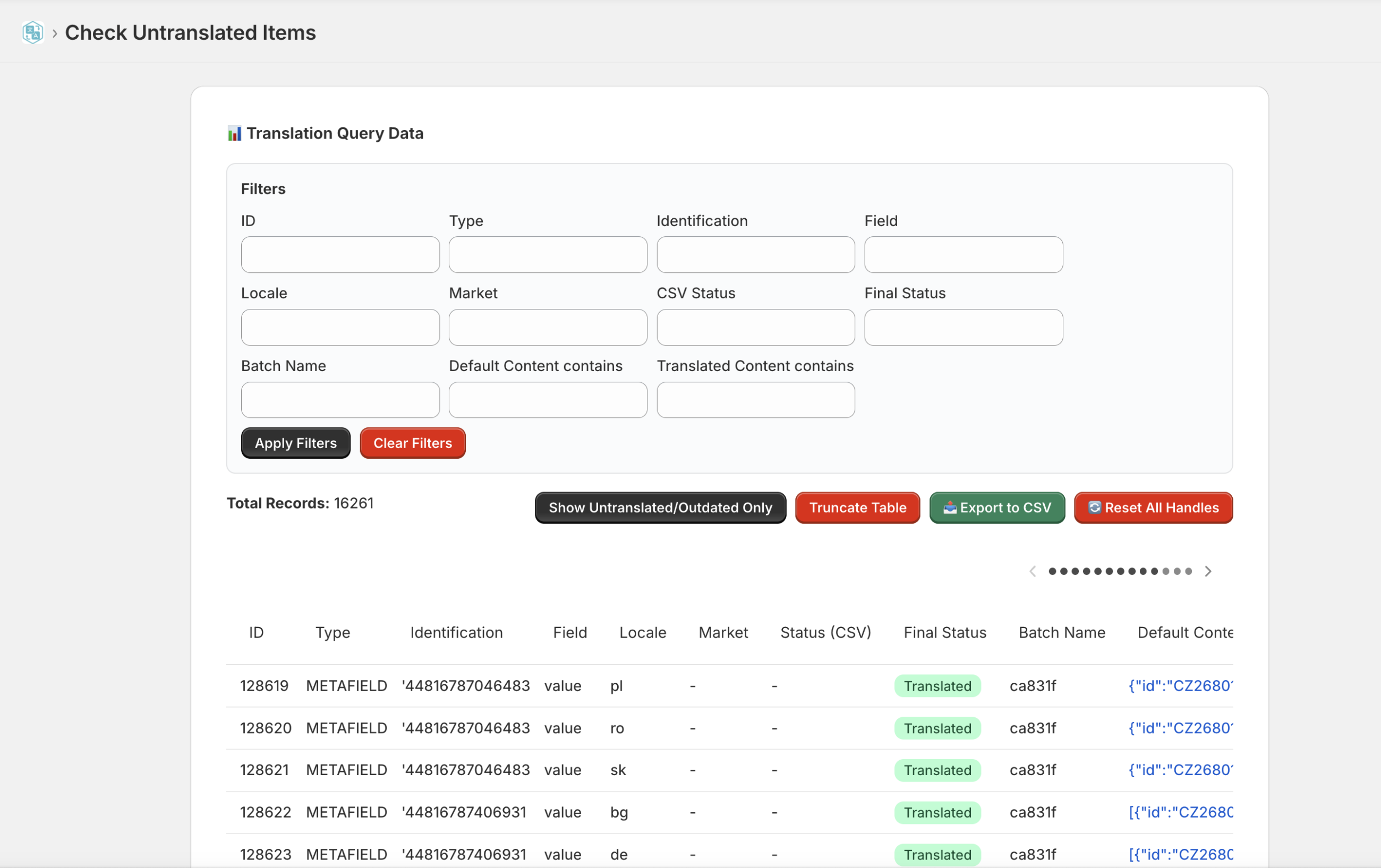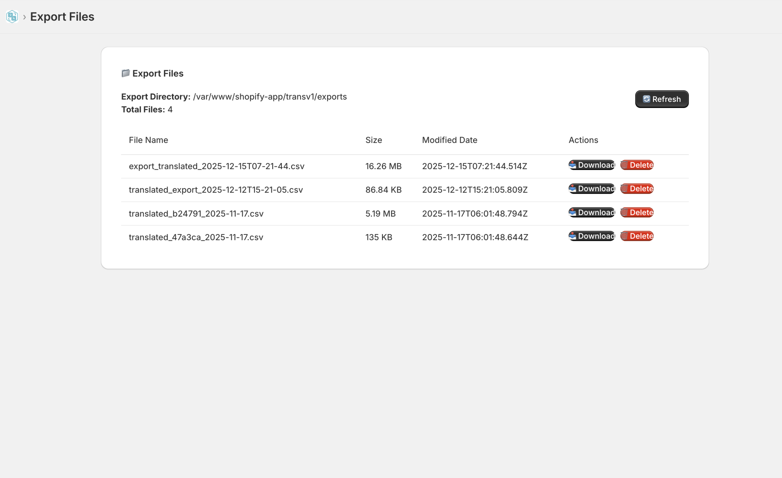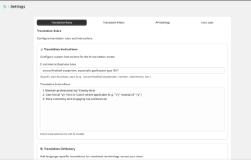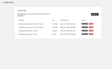 exportujete produkty, kolekce nebo stránky do formátu CSV či ZIP, nahrajete soubor a vše hromadně přeložíte pomocí AI (DeepL, Claude nebo Deep Seek). Přeložený soubor stáhnete a naimportujete jej zpět do administrace.