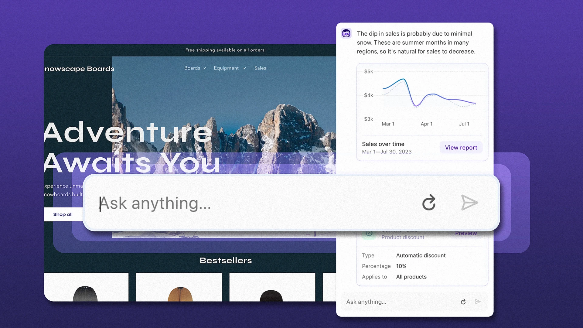 Sidekick je AI asistent integrovaný do adminu e-shopu a výrazně vám urychlí práci v Shopify. Dokáže provádět operativní úkoly (vytvořit produkt, upravovat kolekce, analyzovat prodeje, připraví reporty), pomůže s marketingem (psaní popisků, e-mailů, SEO doporučení), umí navrhovat a aplikovat úpravy storefrontu včetně změn vzhledu nebo upravovat téma podle zadání včetně tvorby Liquid kódu. Sidekick umí vysvětlit, jak fungují nastavení v adminu, doporučit kroky pro růst e-shopu, automatizovat procesy a navrhovat best practices. Odpovědi personalizuje podle prodejů, zákazníků a specifické konfigurace vašeho obchodu.
